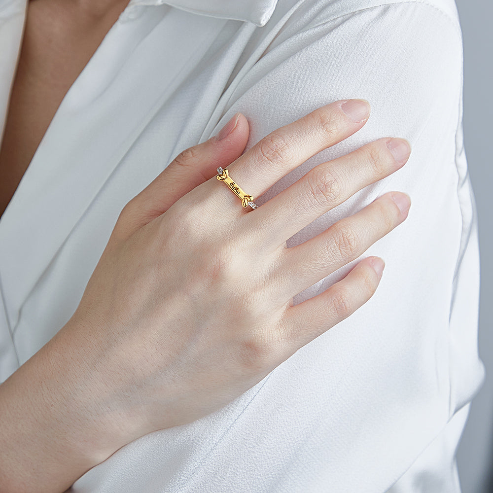 Custom Bone-Shaped Ring with Name Engraving - Adorable Birthday Gift for Dog and Pet Lovers