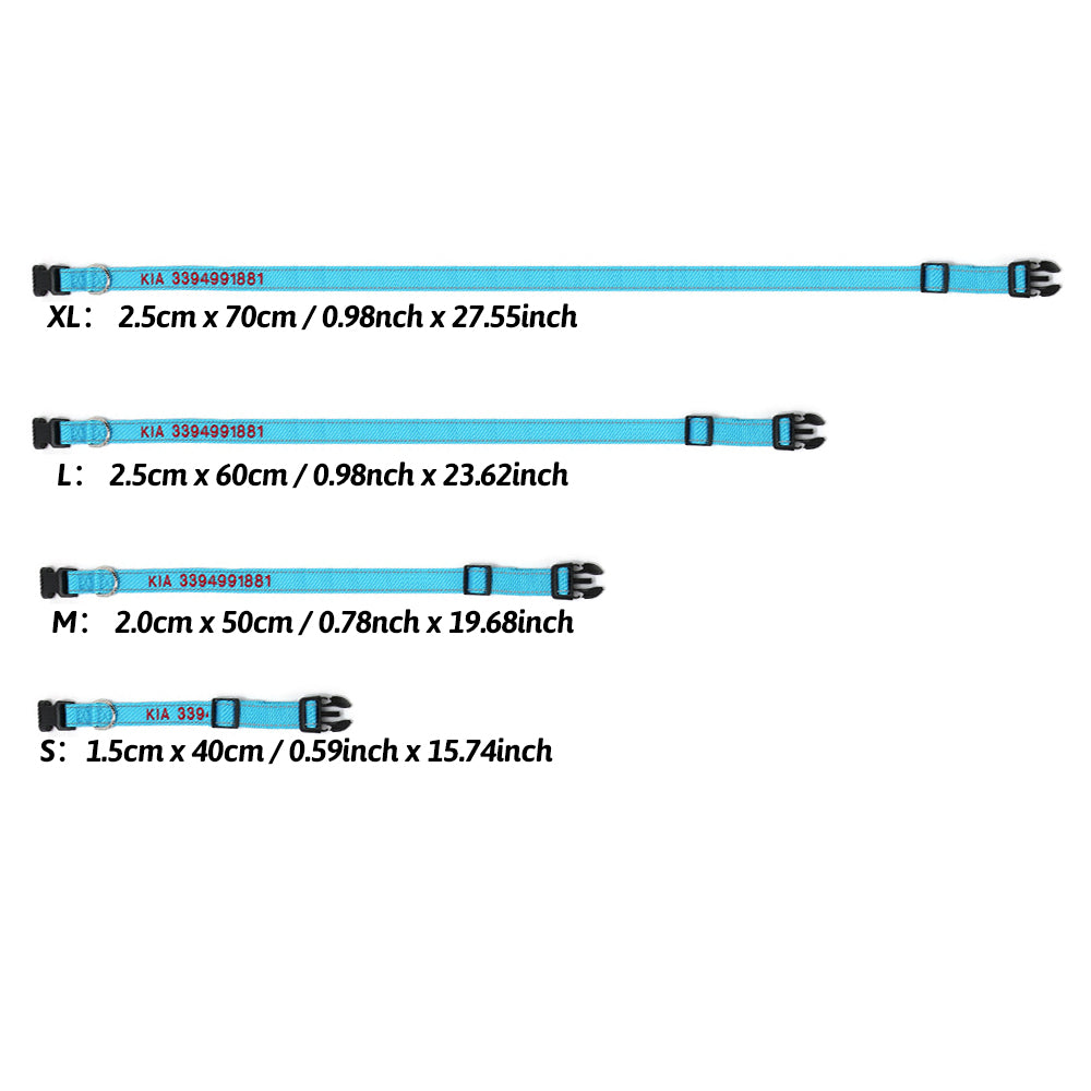 Keep your dog high visibility at night for safety. Vehicles will see your dog well in advance at night walking. This dog collar is made of high density nylon, comfortable, pliable, lightweight and fashion. Also, you can custom your dog's name and your cellphone number on it.